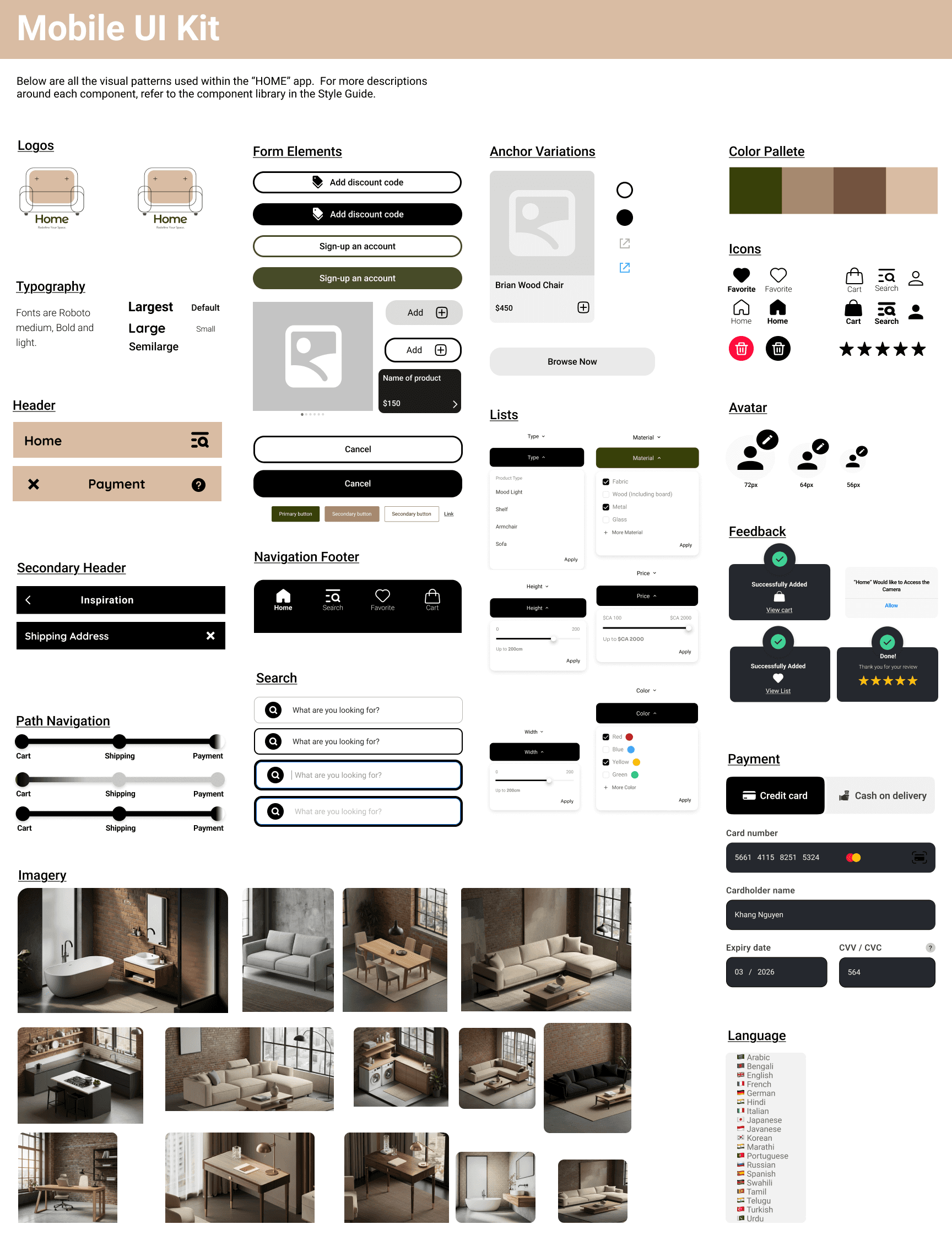 To prepare for the hi-fi prototype, I developed a cohesive UI kit featuring interactive components such as dropdown lists, filter buttons, and search tools with recommendation functionality. Additionally, I refined the logo design to ensure visual consistency and enhance the overall user experience.
