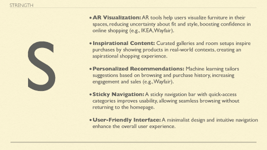 Augmented Reality (AR): Users can visualize furniture in their spaces through AR tools.