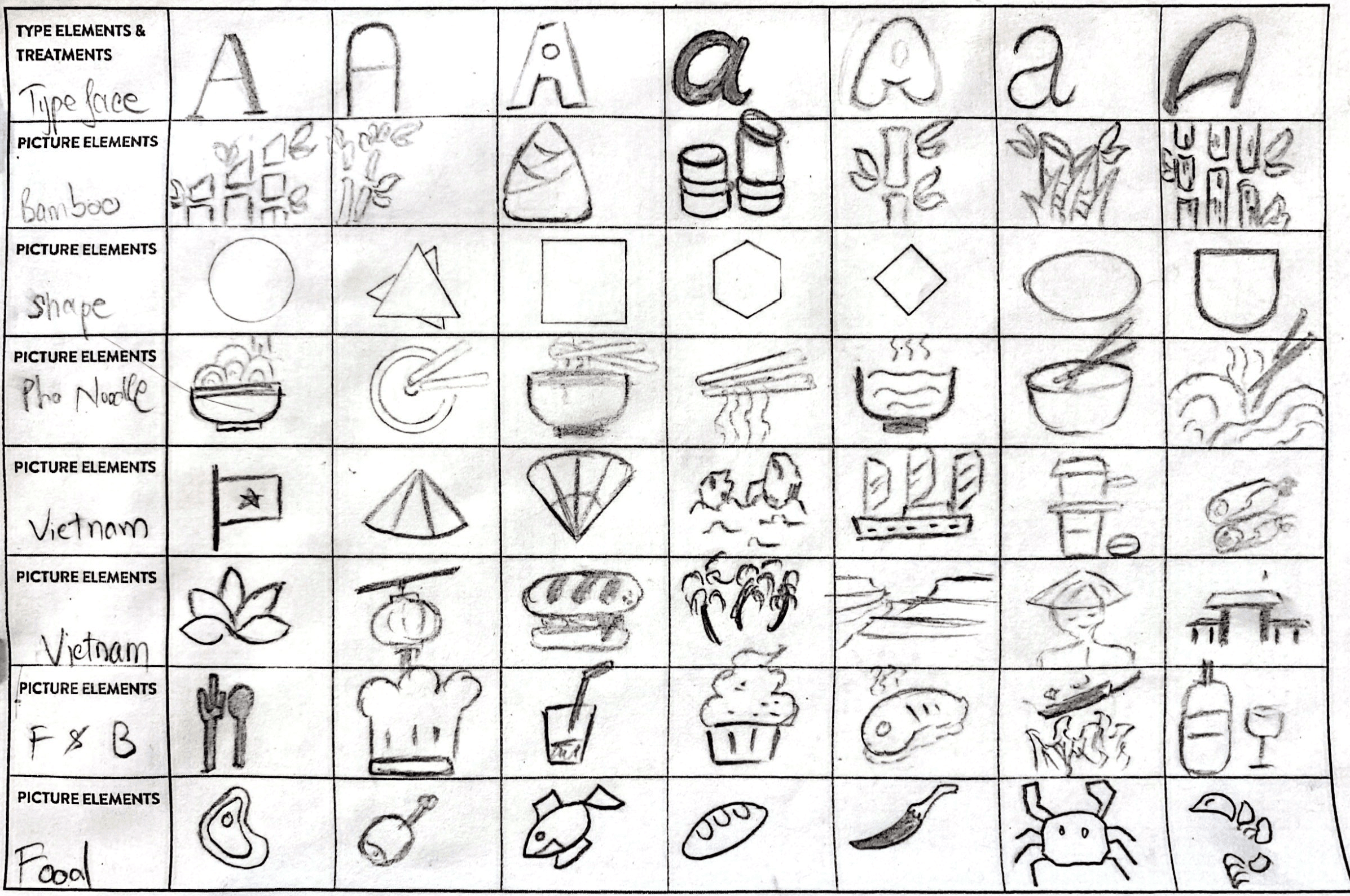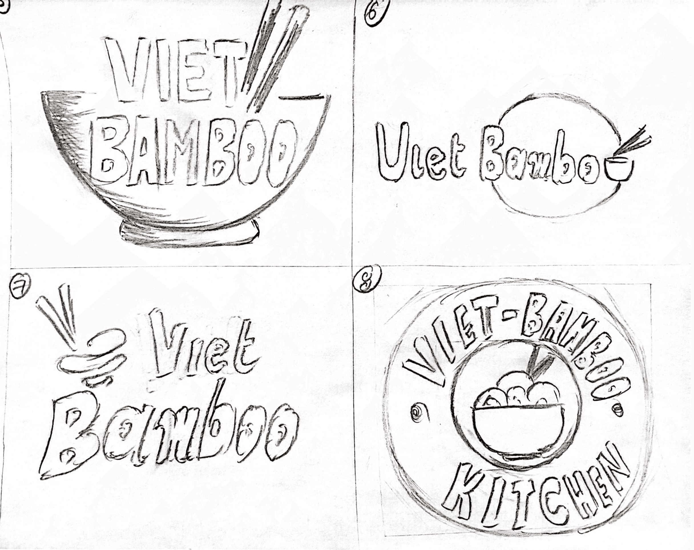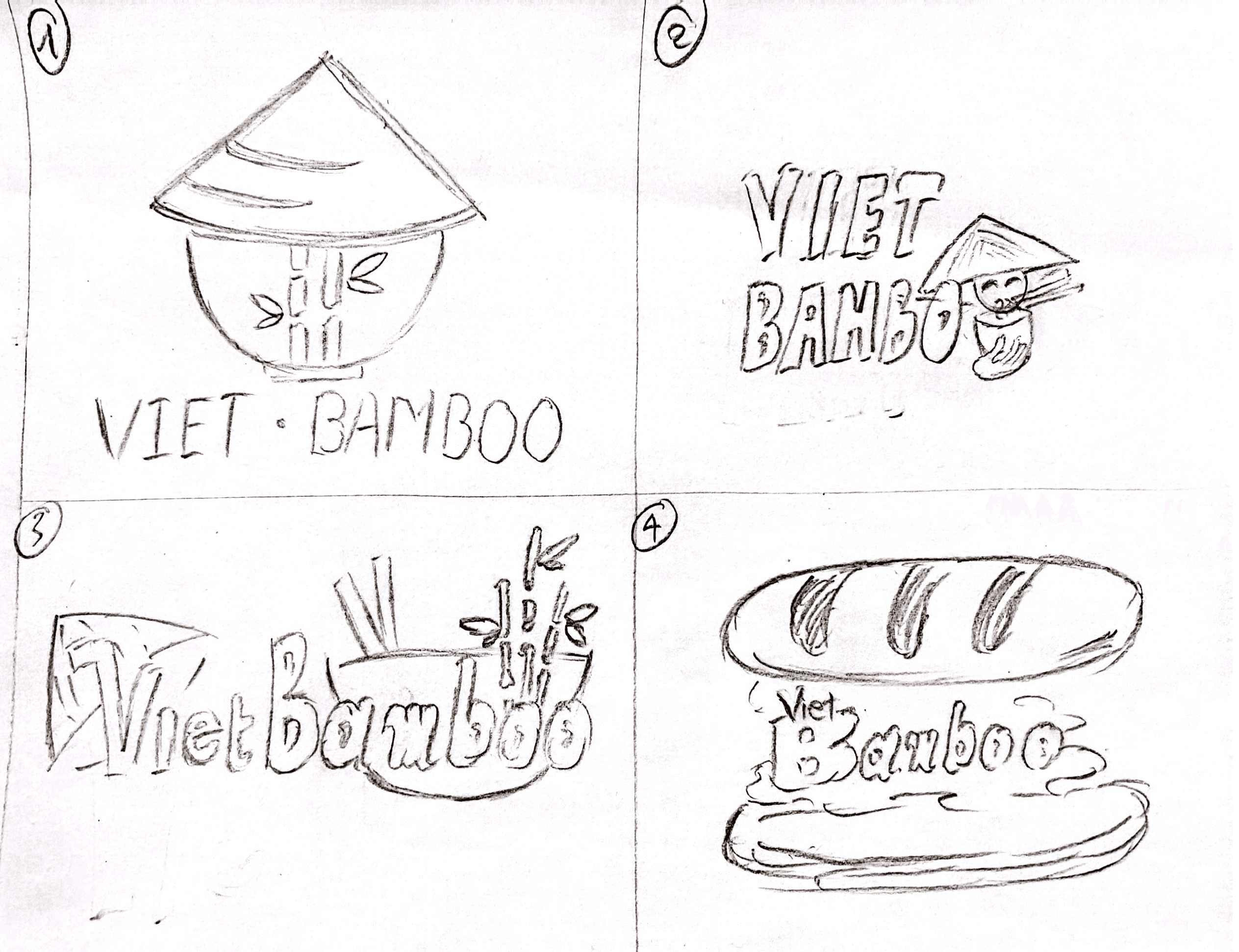The chosen logo design incorporates a bowl of pho, a conical hat, and bamboo—three iconic symbols of Vietnam. The curved lines of the bowl and hat are combined to create a unique and cohesive image of a "bowl wearing a conical hat." Bamboo represents the restaurant's name, VietBamboo, while also serving as a visual highlight. Additional elements, such as the red star (symbolizing Vietnam's flag) and a phin coffee filter, further emphasize the connection to Vietnamese culture, representing the nation's culinary and cultural heritage.